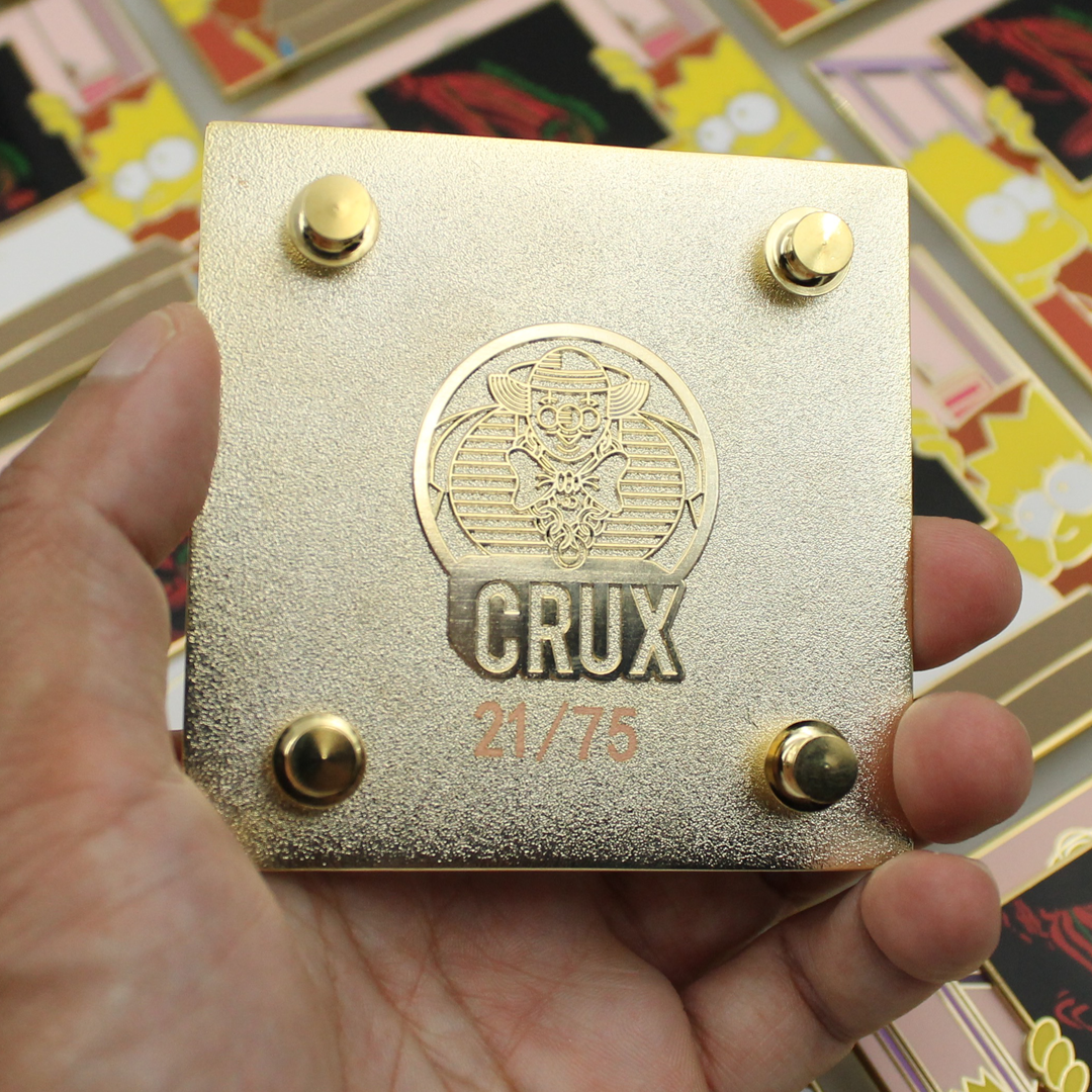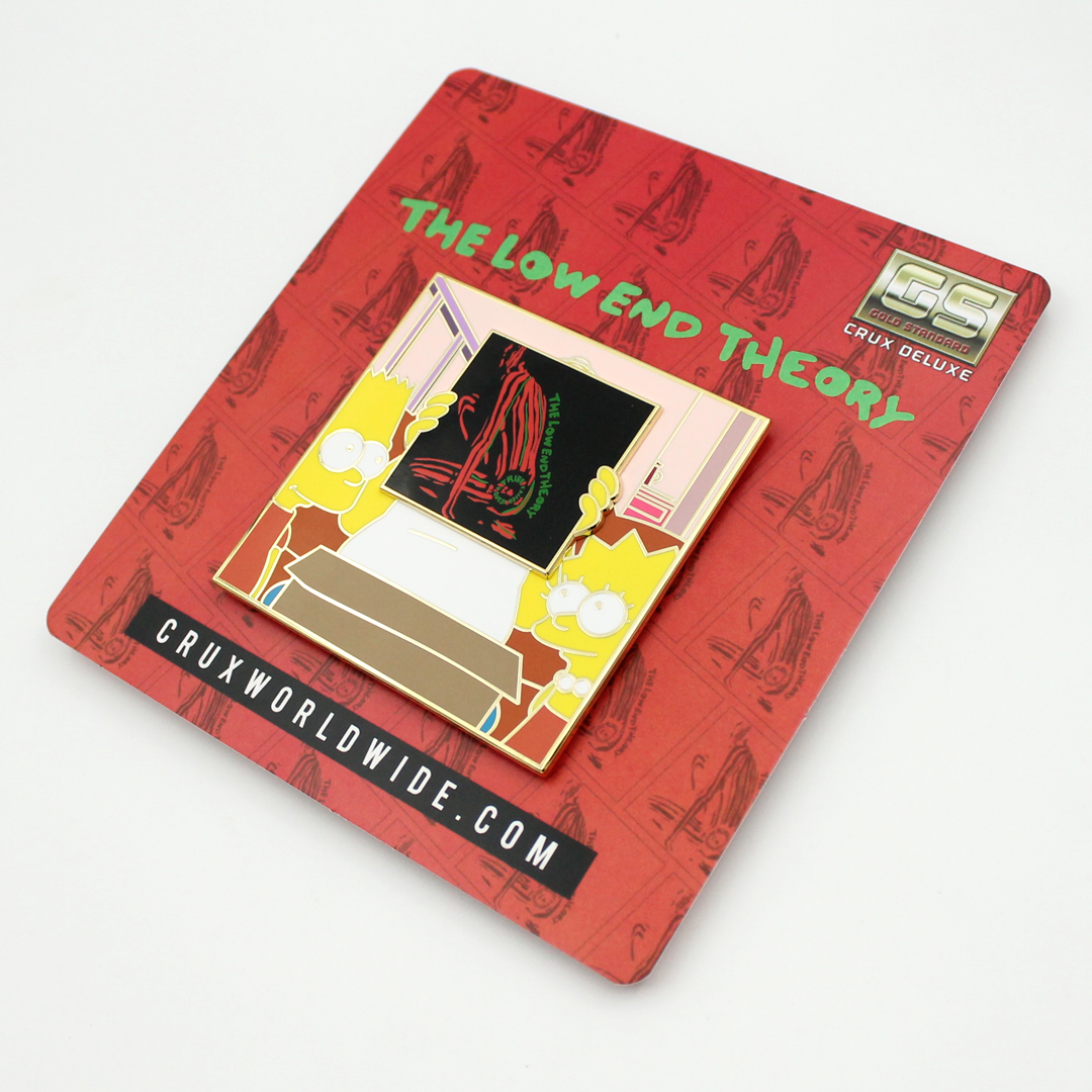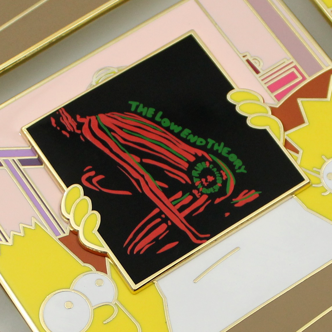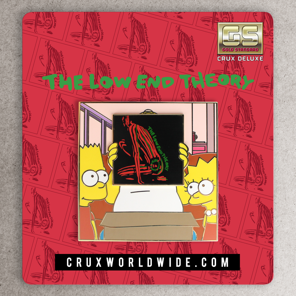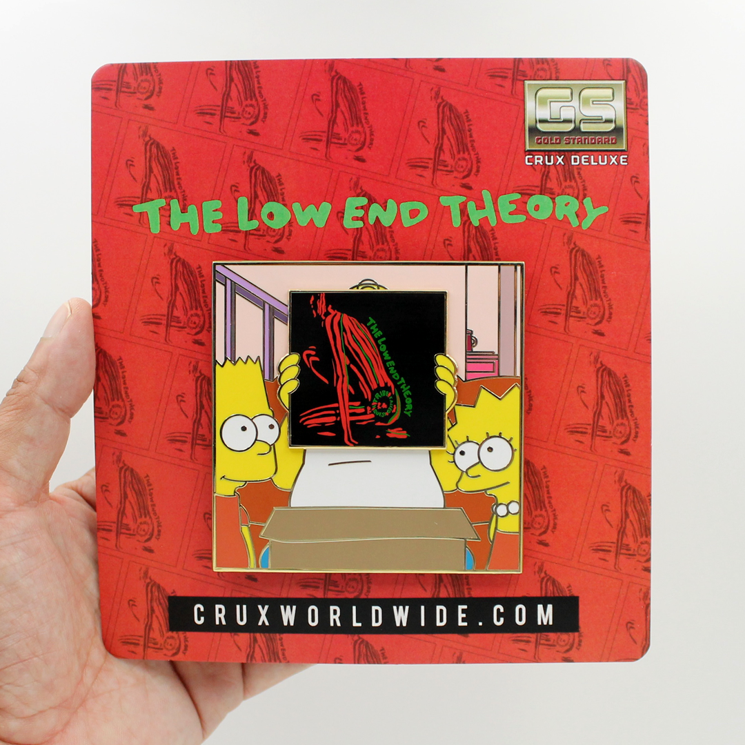 Don't miss out on this exclusive and limited edition Simpsons x Tribe Called Quest deluxe pin! Featuring Homer Simpson holding up the iconic Low End Theory album by Tribe Called Quest, this CRUX mash-up Deluxe Pin is a must-have for any collector. With a square 3x3 inch design and elegant gold plating, this pin is individually numbered and limited to only 75 pieces. Get yours before they're all gone, as there will be no restocks or variations available!