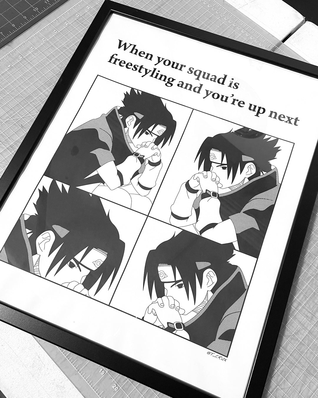 Unleash your inner ninja with this limited-edition Sasuke Uchiha poster! Featuring the brooding Sharingan master in striking black and white on authentic manga-style paper. At 16x20 inches, it's perfect for showing off your Naruto fandom. Only 50 prints exist in this realm, so snag yours before they vanish like a shadow clone! (Frame not included, but your wall is definitely ready for this coolness.)